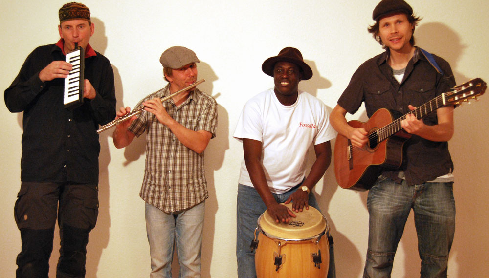 Fossajar spielt ausschließlich selbstgeschriebene Stücke, die zudem vollkommen GEMA-frei sind (Veranstalter müssen also keine entsprechenden Gebühren bezahlen).